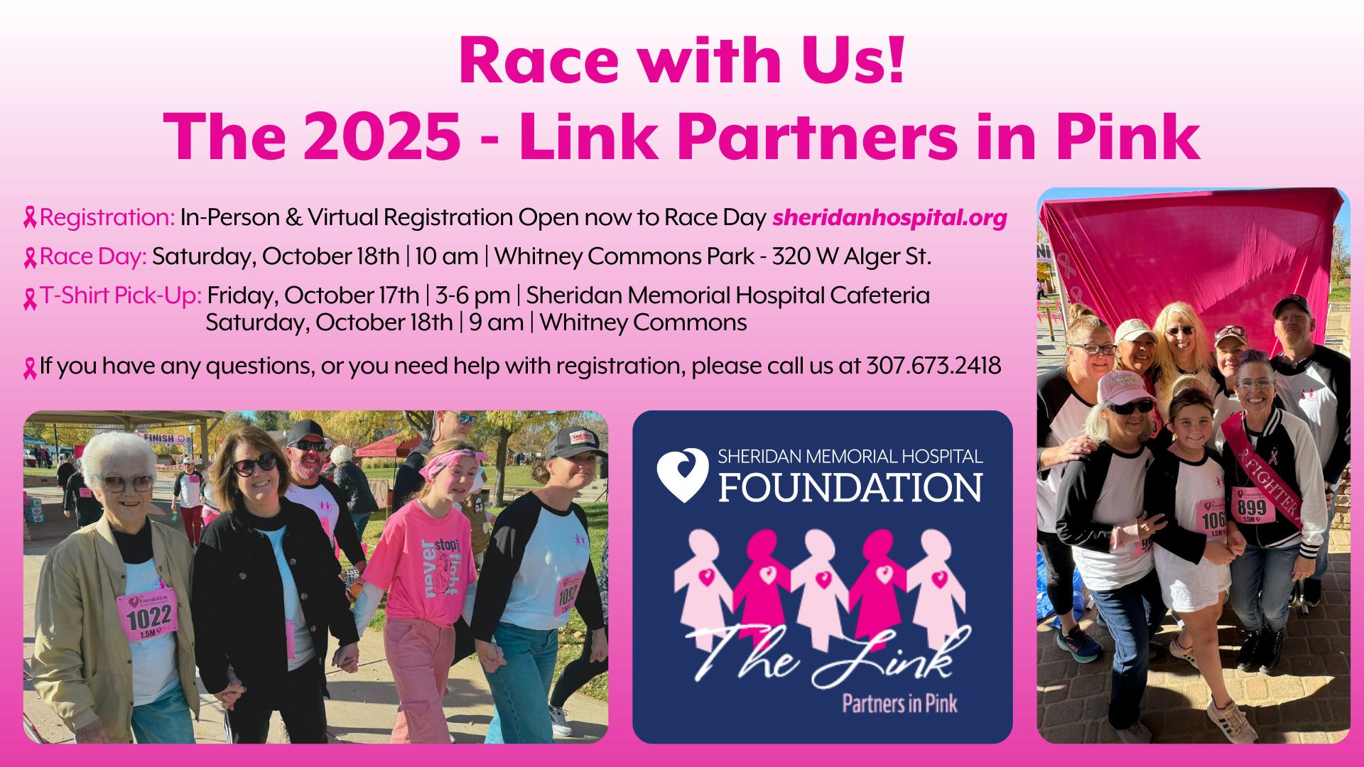 Thank you for your support of The Link - Partners in Pink! Currently, online registration is turned off, but in-person registration can be completed during T-Shirt pickup with our teams during the following times.